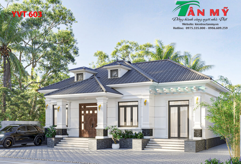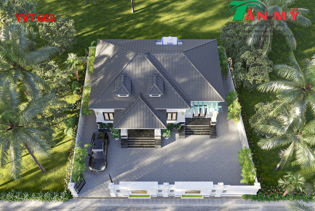 mẫu nhà vườn mái Nhật YVT603 của Kiến Trúc Tân Mỹ nổi bật như một “ốc đảo nghỉ dưỡng” thu nhỏ ngay tại gia. Thiết kế không chỉ thẩm mỹ mà còn mang đến trải nghiệm sống thư thái, tiện nghi cho gia chủ.